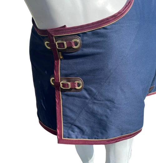 The Cotton Canvas Day Sheet works great at the shows to keep your horse clean. You’ll love the close, contoured fit and the adjustable front with two straps and buckles. There’s one surcingle under the belly and matching wide surcingles for the back legs that deliver a low profile, secure fit. The sturdy Big D hardware and fittings ensures durability.