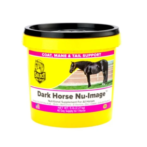 Dark Horse Nu-Image is formulated with Omega-3 and -6 Fatty Acids, Biotin and other B Vitamins, Copper, Zinc and the amino acids Lysine and Methionine. This special nutritional supplement for dark colored horses, includes Kelp and Paprika for an additional boost to those lush pigments that make your horse look his best. Select the Best Dark Horse Nu-Image is the perfect coat supplement for your bay, dark bay, or black horse.