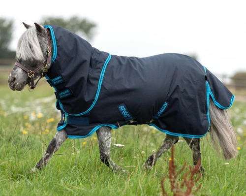 The mini size Amigo Hero 6 Petite Plus Medium Turnout will keep your little buddy warm and dry with 200 grams of insulation. The Amigo Hero 6 Petite Plus has great coverage with a fit created specifically for miniature horses. It includes a tail flap and detachable neck cover.