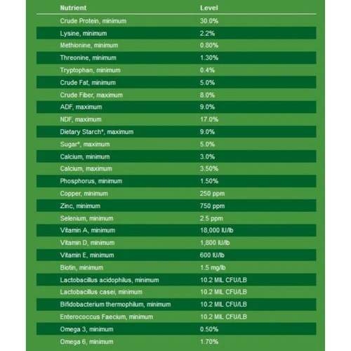 - Highly palatable pellet promotes consistent intake and prevents sorting