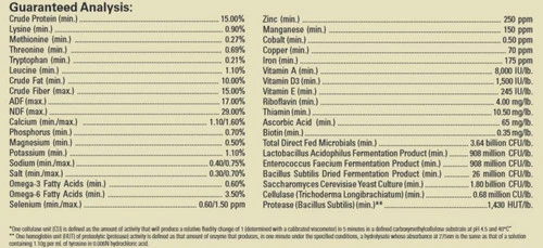 A moderate soluble carbohydrate, high fat, high fiber, beet pulp-based feed. Ideal for weanlings, yearlings, broodmares, and breeding stallions.